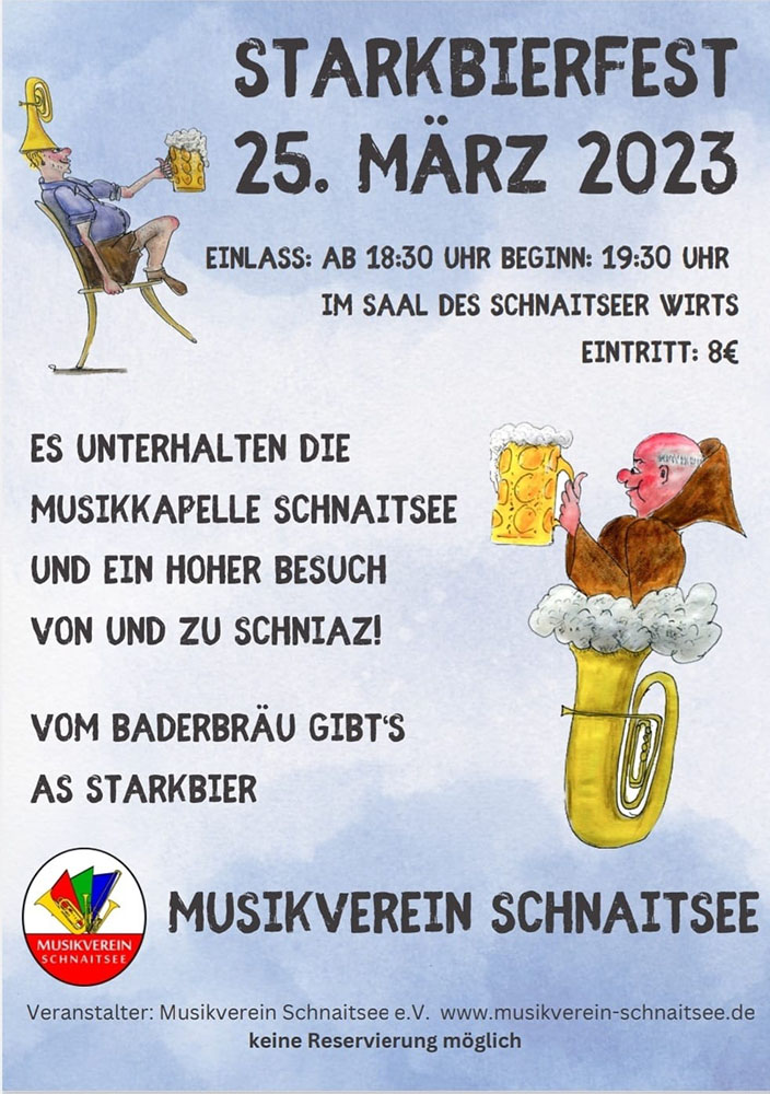 Seit seiner Gründung, 1990 hat sich der Musikverein Schnaitsee stetig weiterentwickelt und kann heute eine große Palette von Angeboten für die verschiedensten Altersstufen, von den ganz Kleinen bis zu den Spätneueinsteigern, anbieten.